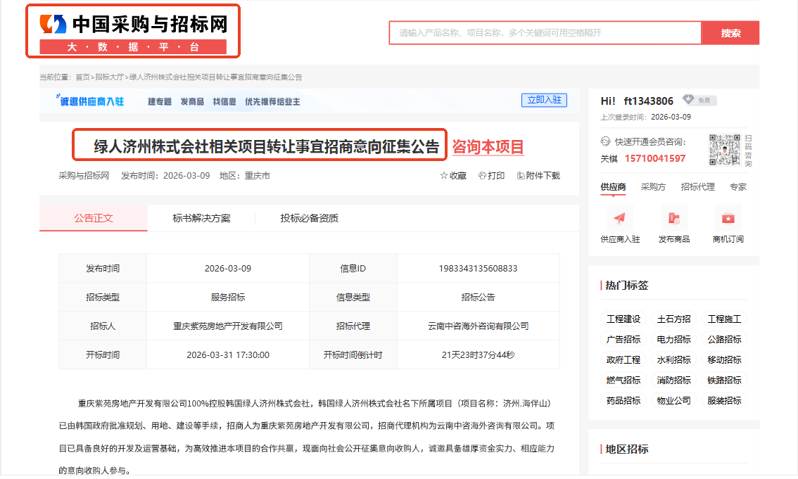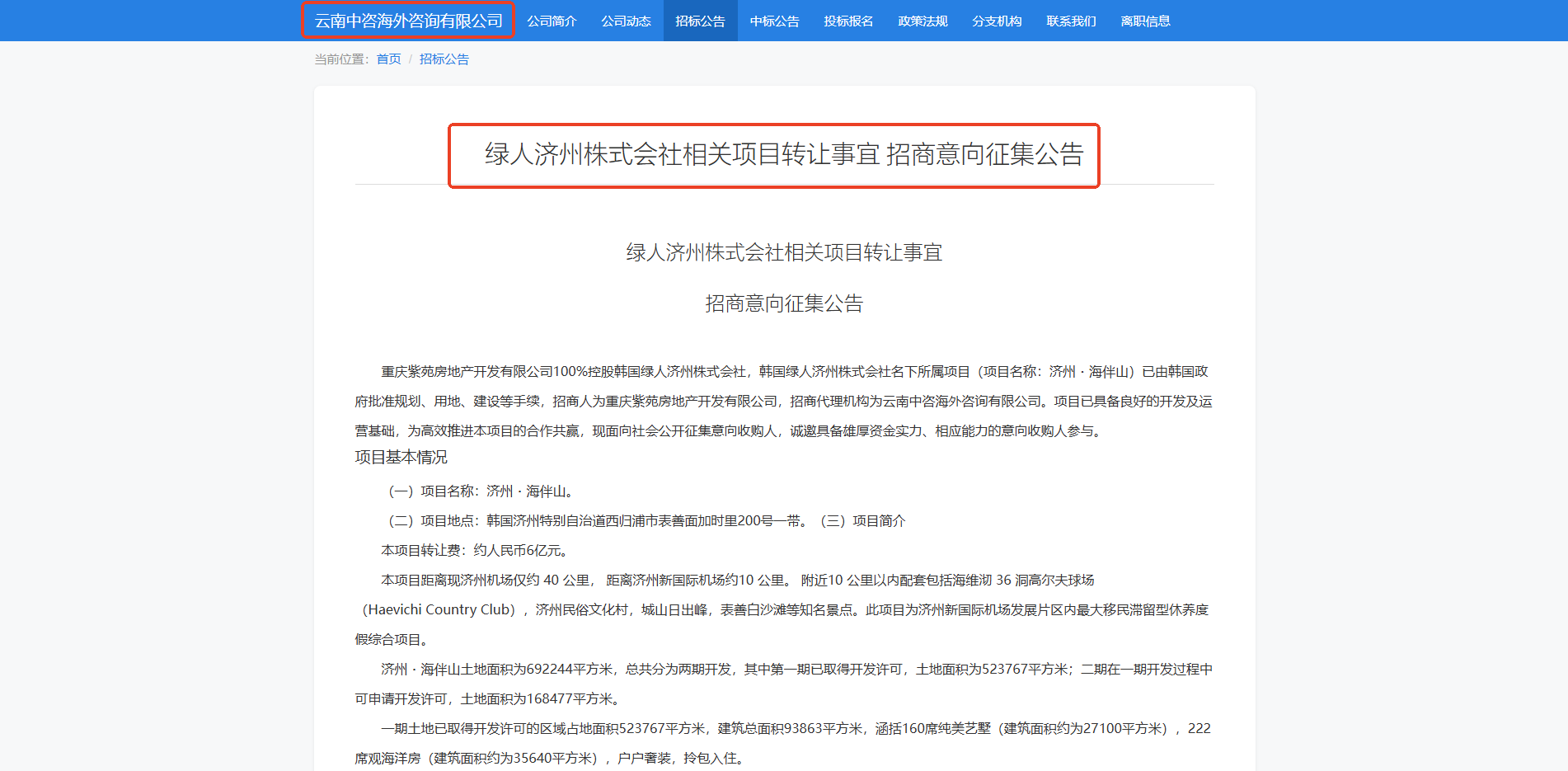 云南中咨海外代理招商的韓國“濟州·海伴山”項目具備良好的開發(fā)及運營基礎,現(xiàn)面向社會公開征集意向收購人,誠邀您的參與,共謀發(fā)展。